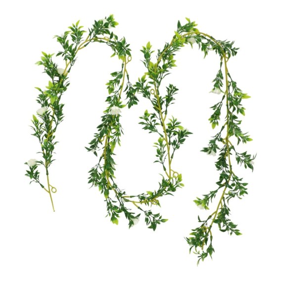 Girlanda ze sztucznych roślin to idealna ozdoba do wnętrza w którym uprawa żywych roślin ze względu na warunki nie jest możliwa. Girlanda nie potrzebuje światła słonecznego ani podlewania. Wykonana w całości z poliestru będzie nam służyć i cieszyć oko przez wiele lat.